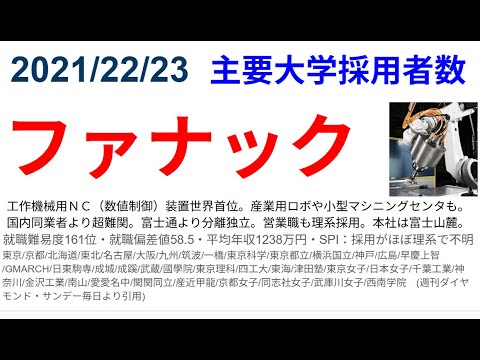 今回はファナックの採用大学ランキングの動画です。
